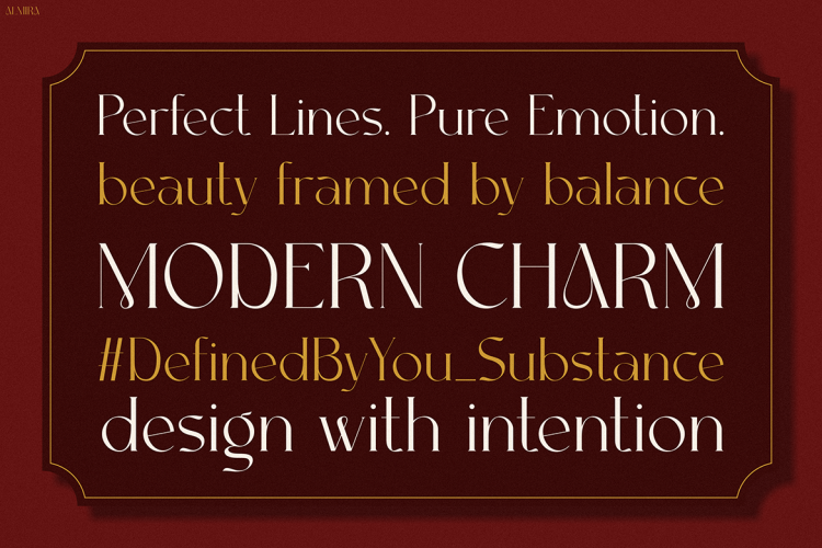 This elegant serif font is more than just stylishโitโs full of personality. The thoughtful design gives it a luxurious touch that enhances any project. Therefore, Almira becomes the ideal choice for brands that want to express elegance, creativity, and confidence. Its legibility and structure make it suitable for both small details and bold headlines. Furthermore, it transitions smoothly between print and digital layouts, maintaining clarity and sophistication in every use.