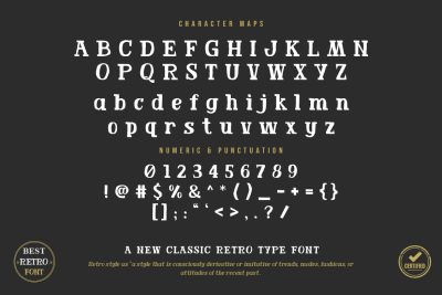 Retro Font Badgeworthy draws inspiration from vintage aesthetics and timeless elegance, making it a classic typeface. Furthermore, it combines nostalgia with modern design. Featuring bold and distinctive letterforms, it captures the essence of retro design while also maintaining a modern touch. The designers meticulously crafted this font with smooth curves, strong serifs, and a charming, hand-drawn feel, which adds to its appeal. It perfectly combines functionality and artistic flair, making it a versatile choice for various creative projects.