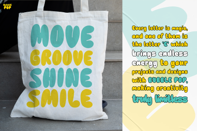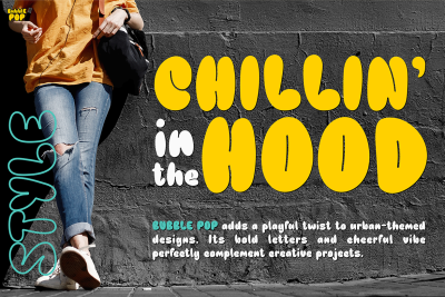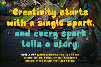 In conclusion, BUBBLO POP is the perfect choice for projects that focus on creativity, positivity, and playfulness. Its bold, energetic style will undoubtedly make your designs stand out, whether in print or digital formats. With its versatility and charm, this font is a must-have for anyone seeking a dynamic and fun typeface.