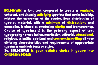 Funny Font BoldenVan brings energy and personality to every design. With its thick, rounded letterforms, it creates a lively style that captures attention right away. Perfect for titles, announcements, posters, and social media graphics, BoldenVan works well in vibrant colors or alongside other fonts. Moreover, itโs especially suited for fun themes like childrenโs media, festive events, and branding that demands a bold touch.