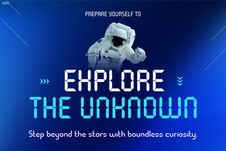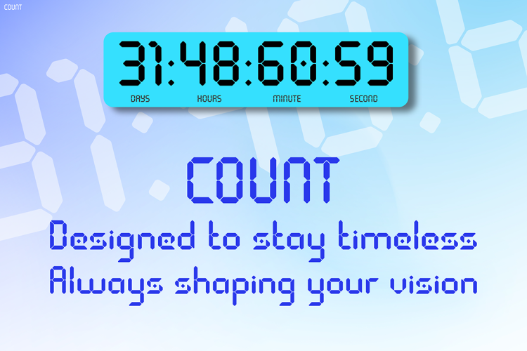 Additionally, its sleek tone and confident structure ensure that your work not only looks modern but also feels futuristic in essence. Whether youโre building a brand identity, designing a UI interface, or creating promotional visuals, COUNT will make your message stand out effortlessly.