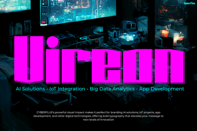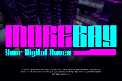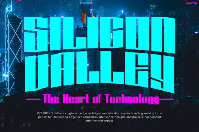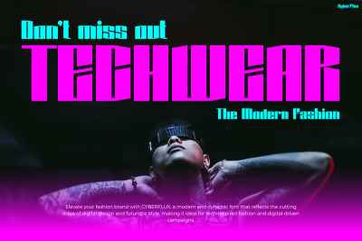 Thanks to its cyberpunk aesthetic, Cyberflux is especially effective in themes related to virtual worlds, digital fashion, and cutting-edge tech. Paired with neon or metallic palettes, the font creates visual intensity that commands attention. Plus, its bold personality helps you build a brand that feels ahead of its time. Consequently, Cyberflux becomes a go-to choice for designers who want a typeface that feels edgy, relevant, and unmistakably modern.