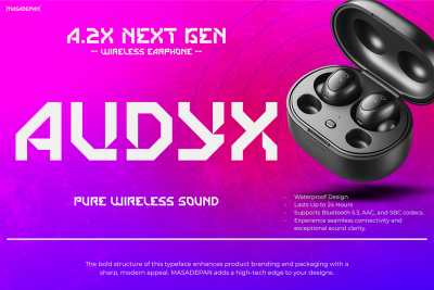 This typeface also shines in product packaging for industries such as electronics, automotive, and futuristic fashion. By incorporating MASADEPAN, brands can communicate cutting-edge design and attract forward-thinking consumers. Additionally, event organizers can use it to elevate promotional materials for conferences, expos, and seminars.
