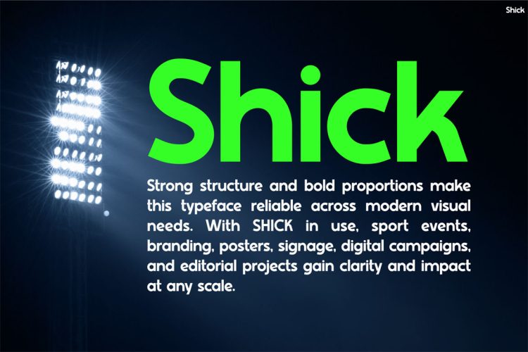 Futuristic Font Shick is designed with a bold sport-driven character that emphasizes movement, rhythm, and impact. Each letterform features clean edges and solid weight, creating a powerful visual presence across digital and print media. In addition, the font maintains excellent legibility, even when used in fast-paced layouts or large-format designs. Because of its modern construction, Shick adapts well to posters, social media graphics, banners, and event branding. Furthermore, its expressive style adds confidence to headlines while still supporting short body text in promotional materials. The fontโs flexibility allows designers to build energetic compositions that feel modern, sharp, and intentional. Most importantly, Shick delivers a strong personality without sacrificing usability.