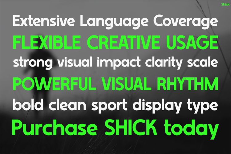 Futuristic Font Shick is a modern sport display typeface created to deliver power, speed, and visual confidence in every letter. From the first glance, this font communicates motion and energy through bold proportions, sharp geometry, and clean futuristic cuts. Its strong structure makes headlines feel fast and decisive, while the balanced spacing keeps text readable even at large scales. Inspired by athletic performance, urban sports culture, and modern technology, Shick blends strength with clarity. As a result, it works perfectly for designs that need to feel dynamic, confident, and forward-looking. Moreover, its contemporary aesthetic helps brands stand out in crowded visual spaces without feeling aggressive or cluttered. With support for 65 languages, Shick is also ready for global projects that demand consistency across regions.