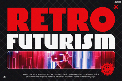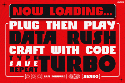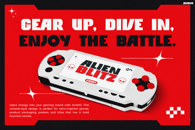Gaming Font AVAKO is a bold and electrifying typeface that seamlessly blends retro charm with futuristic aesthetics. From the very first glance, AVAKO captures attention through its thick, geometric letterforms and vintage sci-fi vibe. Not only does it recall the visual flair of classic arcade games, but it also brings a sleek, digital edge that feels right at home in the modern tech landscape. Consequently, it creates a unique aesthetic that stands out across posters, packaging, and digital branding. Thanks to its clean construction and high-impact style, this font enhances readability while delivering strong visual hierarchy. In short, AVAKO is not just a fontโitโs a design statement.