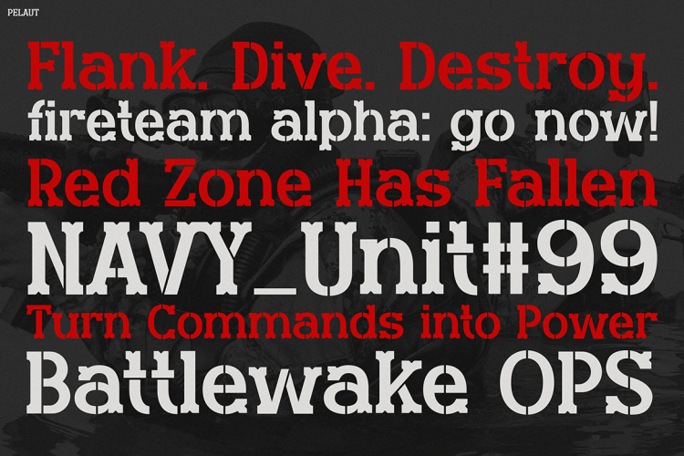 Designers creating movie intros, action-themed branding, or gear packaging will find PELAUT equally effective. Its sharp edges and bold silhouette work perfectly for any brand or message needing a dose of strength and discipline.