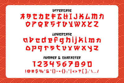 Hanbai is versatile for both digital and print uses. It stands out on colorful backgrounds and pairs well with Japanese-themed patterns, such as wave designs. The font remains readable at different sizes, from large titles to smaller labels, making it adaptable for various design needs. With its distinct Japanese-inspired look, Hanbai enhances projects showcasing Japanese culture in a modern, accessible way. Its blend of traditional and contemporary appeal makes it ideal for designs that merge heritage with modern aesthetics.