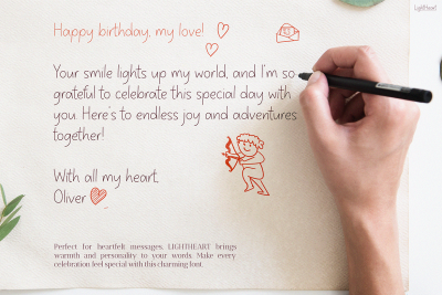 If you need a handwriting font with warmth and elegance, Lightheart is a perfect choice. It offers a natural, inviting look that enhances any design. Whether for personal projects or professional branding, it helps create visuals that truly connect.