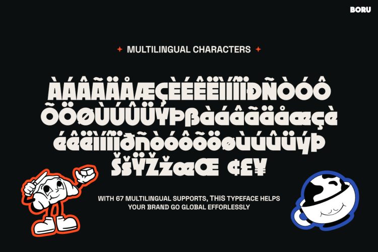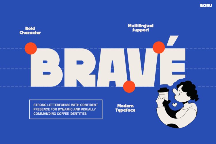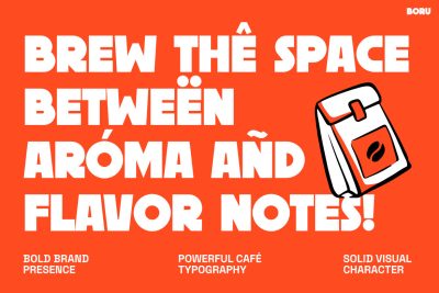 This font is ideal for coffee branding, cafรฉ menus, packaging design, posters, and social media graphics. Additionally, it works perfectly for streetwear brands, lifestyle products, and modern advertising campaigns. If you are targeting a youthful and energetic audience, BORU will amplify your message effectively. Likewise, it suits creative entrepreneurs, graphic designers, and branding specialists who want to build a bold and memorable identity.