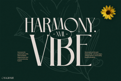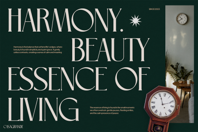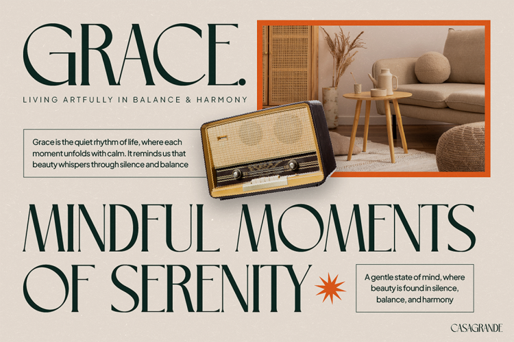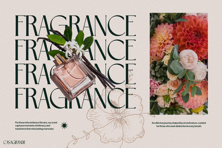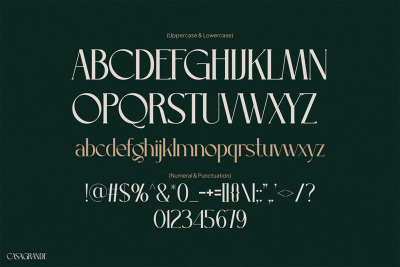 Casagrande is designed with both function and style in mind. On one hand, its balanced proportions and graceful letters ensure readability. On the other hand, its luxurious details provide a premium feel that captures attention. As a result, it works beautifully across branding, editorial layouts, product packaging, and lifestyle designs.