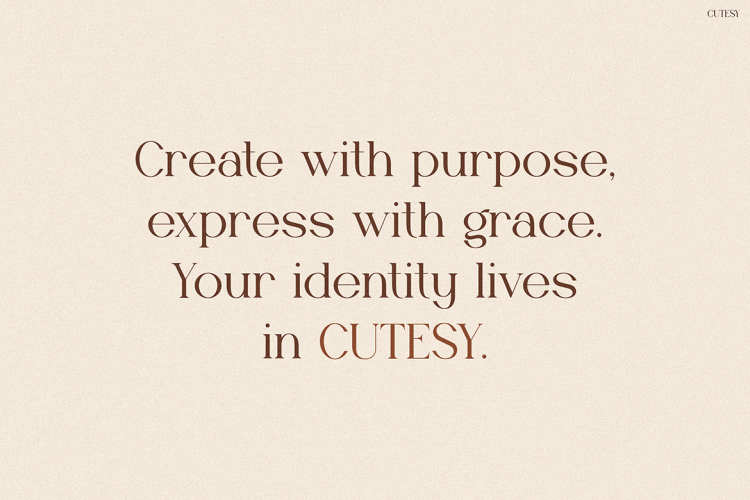 Moreover, Cutesy is tailored for visual platforms like Instagram. It stands out effortlessly in clean, minimal layouts. Not only does it grab attention, but it also maintains a refined and cohesive tone. Therefore, whether youโre announcing a product launch, highlighting a special discount, or introducing a premium collection, this font makes your message look polished and compelling, It adds an editorial, high-fashion look to your message.