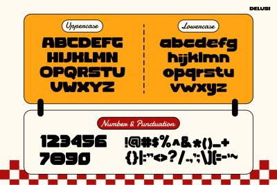 In addition, the thick letterforms create instant impact. The rounded edges add friendliness and charm. At the same time, spacing stays clean and readable. Even at smaller sizes, the text remains clear. Meanwhile, large headlines feel powerful and expressive. Because of this balance, DELUSI performs well across menus, posters, and social media graphics.