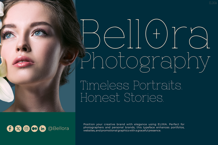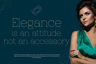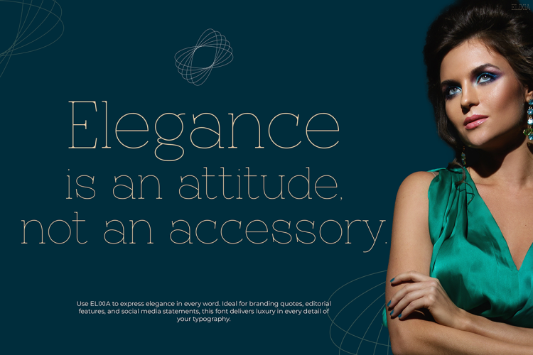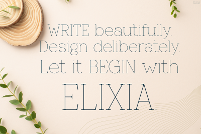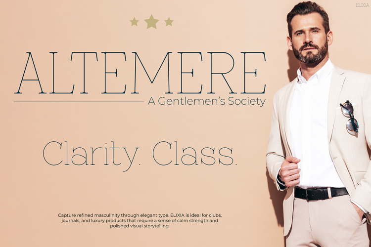 Additionally, its structure supports readability without compromising visual impact. The font works beautifully in minimal layouts, while its striking appearance ensures it never fades into the background. In other words, Elixia helps your design speak louder and more clearly.