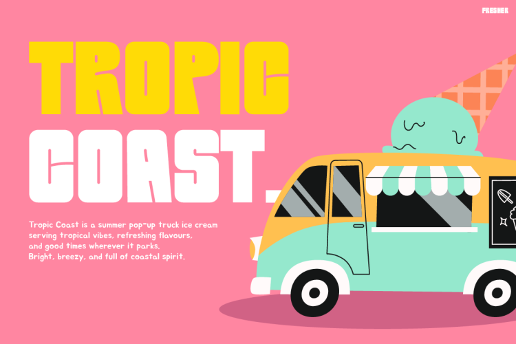 Instagram Font FRESHER works beautifully in any creative project that needs a splash of energy and positivity. You can use it for summer campaigns, tropical branding, or beach event posters. Additionally, it shines in food packaging, lifestyle advertisements, and fashion promotions. Because of its bold legibility and friendly tone, it performs well both in large headlines and mid-size display text.