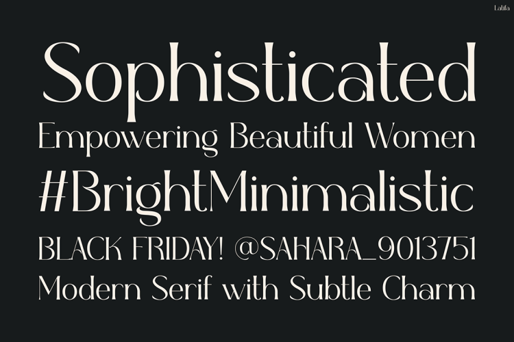 So, elevate your designs with confidence. Choose Latifa, and let your visuals speak with modern sophistication and timeless appeal.