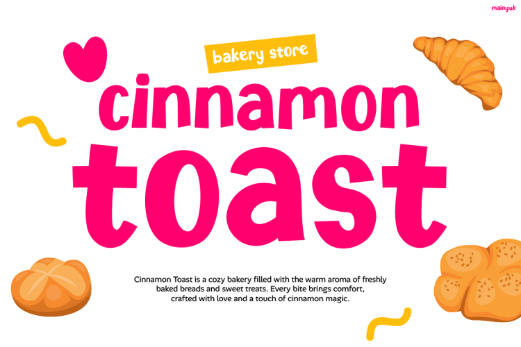 If you love designs that radiate happiness, then Mainyuk is definitely for you. This font was created for branding designers, illustrators, content creators, and small business owners who want to communicate fun and friendliness through their visuals. Moreover, itโs ideal for kidsโ brands, daycare centers, bakeries, and toy packagingโany place where imagination and joy meet.