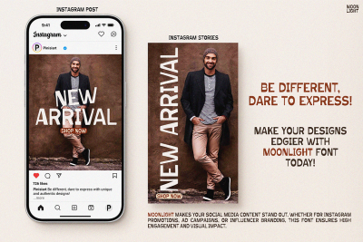 Instagram Font MOONLIGHT is a typeface that perfectly captures the essence of urban culture and high-end fashion aesthetics. With its handcrafted, slightly irregular letterforms, this font exudes an organic yet sophisticated appeal, making it perfect for contemporary branding. Moreover, its bold strokes and natural imperfections add character, giving it an authentic and unique charm.