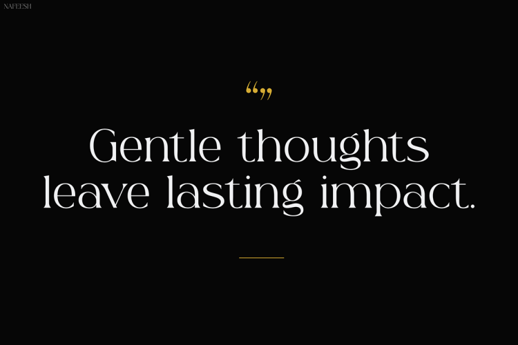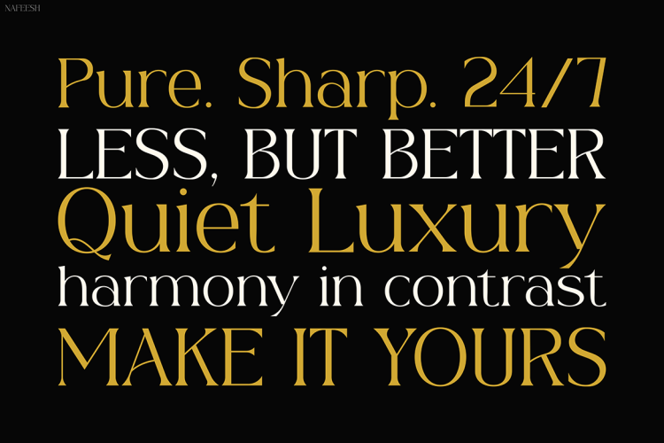 From soft-toned branding to high-end editorial spreads, Nafeesh adapts effortlessly. Its sleek appearance works beautifully in muted color palettes, black-and-white themes, or even bold gold accents. Every letterform is designed to be elegant, structured, and visually striking.