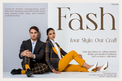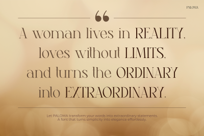 Graphic designers frequently use PALOMA for print media, such as magazines, brochures, and lookbooks. Its chic serif style elevates logos, business cards, and product labels with a luxurious touch. Wedding planners and stationery designers can craft elegant invitations that exude timeless charm with this font.