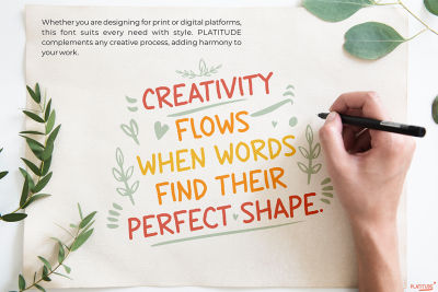 On the other hand, Platitude also shines in personal projects. It adds elegance to wedding invitations, mood boards, and custom stationery. Likewise, bloggers and educators can use it for headlines, e-books, or presentations that require a stylish, modern feel. This font brings charm and sophistication to both creative and professional designs.