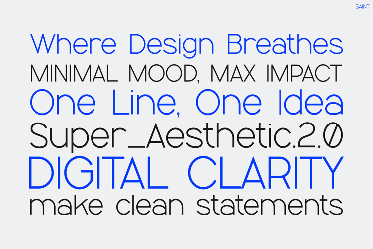Unlike many minimalist fonts that lack personality, Saint injects character into clarity. It stands out through its ultra-consistent stroke weight and excellent readability, making it ideal for both headlines and body text. You can spot its visual rhythm in tech branding, product presentations, music event posters, and digital adsโwhere clarity is key but style still matters. This font doesn’t just deliver information; it commands attention while doing it.