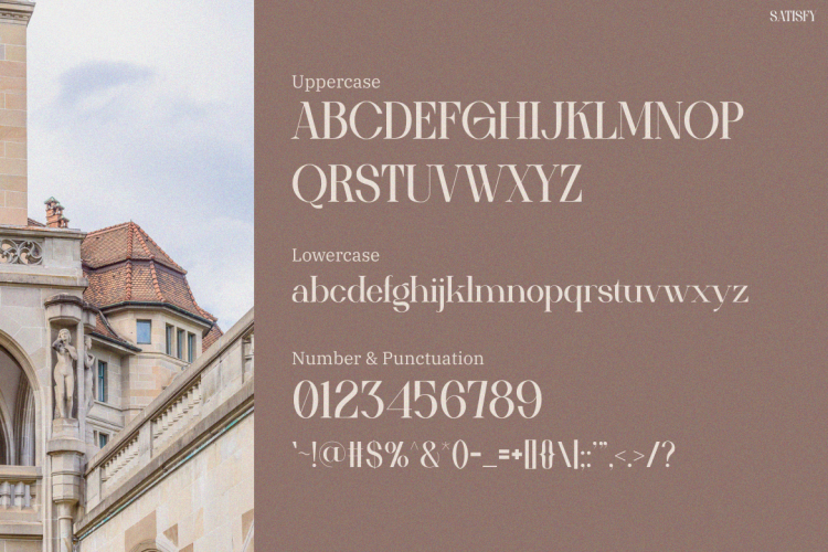 Instagram Font SATISFY brings a refined and modern serif style that feels instantly premium. It stands out because each curve looks intentional and smooth. The font remains elegant while staying easy to read. Moreover, its contrast and tall shapes create a classy and flexible aesthetic. It also adapts well to branding, social media posts, magazines, posters, product packaging, and digital campaigns. The preview images show how beautifully it pairs with architecture, fashion themes, luxury items, and editorial layouts. Because of this versatility,ย SATISFY becomes a powerful tool for any visual creator.