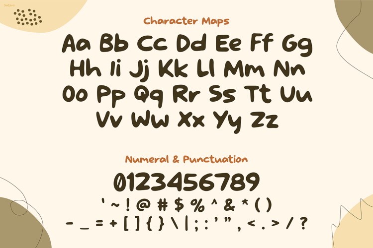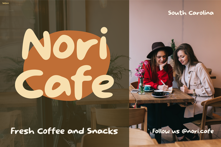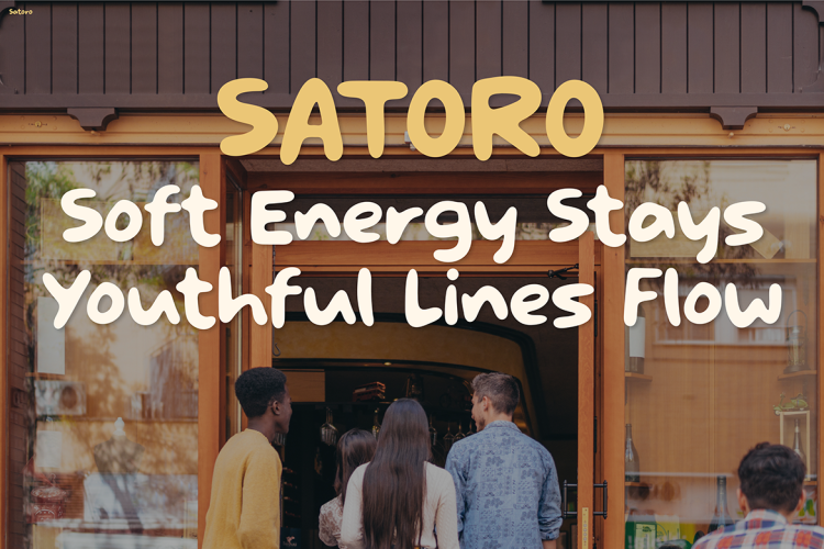 The preview images highlight the fontโs charming personality: cozy cafรฉ menus, warm social quotes, soft product labels, and youthful lifestyle promotions. Every letter glides with balanced spacing, giving your designs a clean yet handcrafted look. Whether displayed in large titles or shorter captions, Satoro remains easy to read while maintaining its playful, hugging-style visual identity.