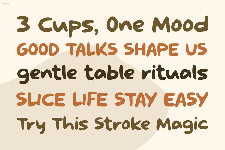 Its versatility shines in both light and dark scenes, as shown in the previews. From โDaily Chill Setโ to โWarm Cups Warm People,โ the font adapts beautifullyโmaking ordinary layouts feel more intimate, friendly, and full of life. If youโre aiming for designs that feel local, human, and emotionally engaging, Satoro brings the exact softness you need.