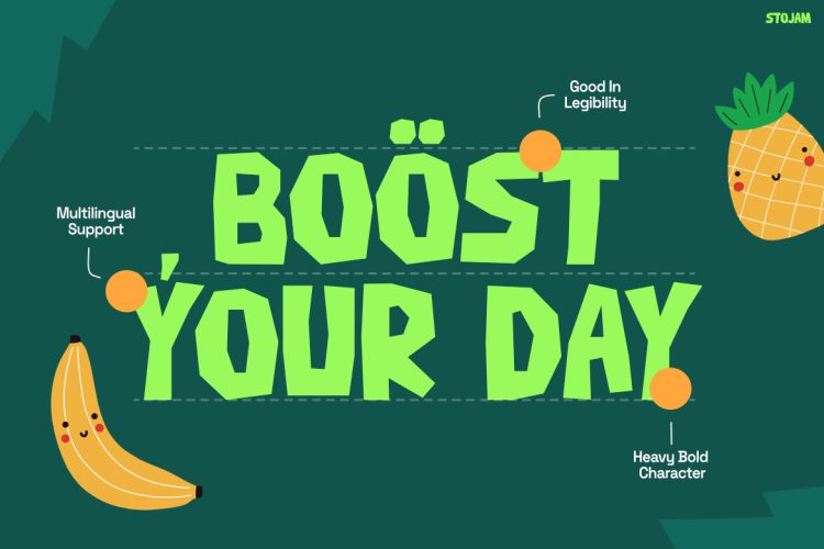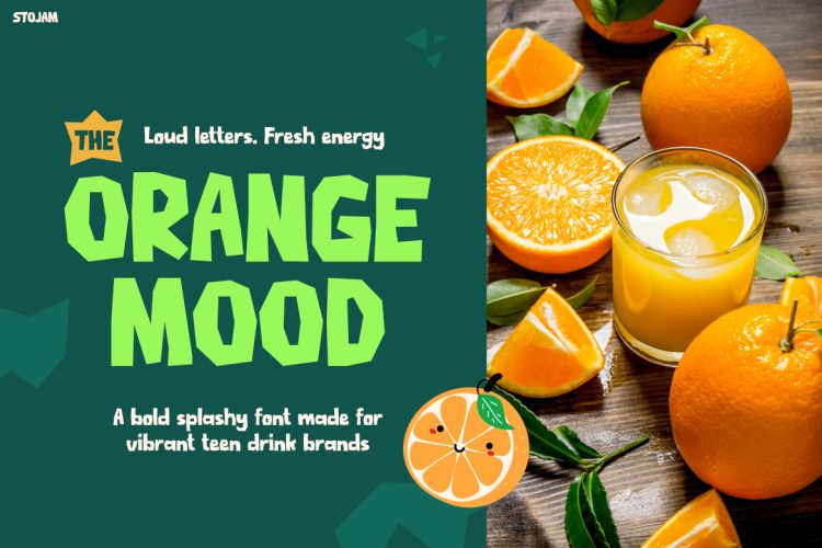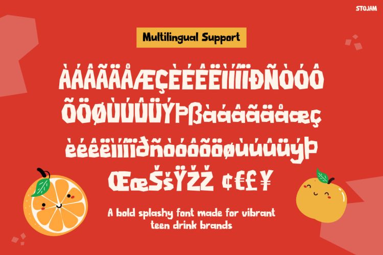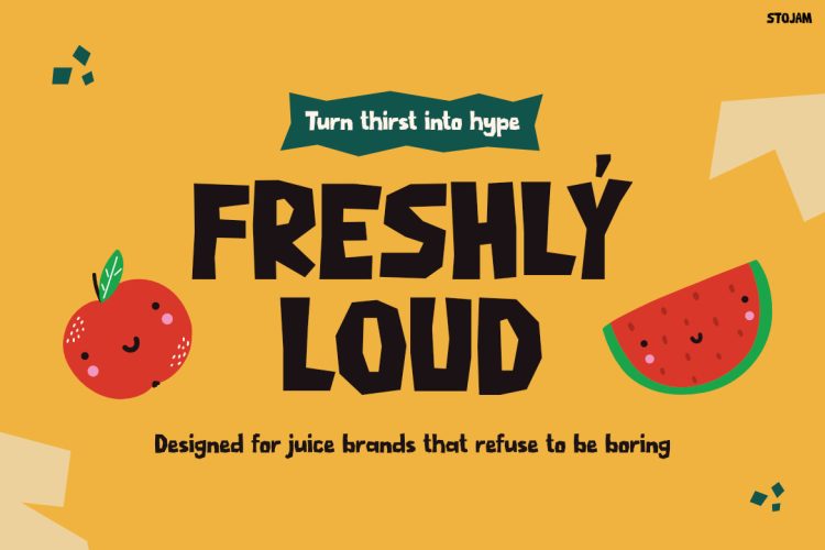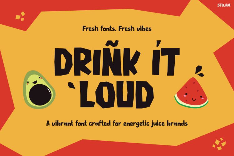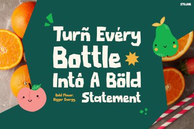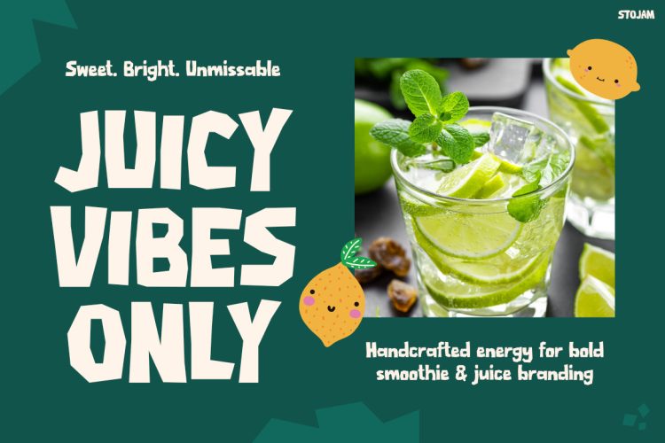 STOJAM is ideal for designers, beverage brands, and creative businesses that want to build a bold and fun identity. It works especially well for juice brands, smoothie packaging, drink labels, snack brands, and food promotions. In addition, the font fits social media graphics, posters, advertisements, and playful product branding. Not only does it capture attention quickly, but it also creates a cheerful and energetic visual style that audiences instantly remember.