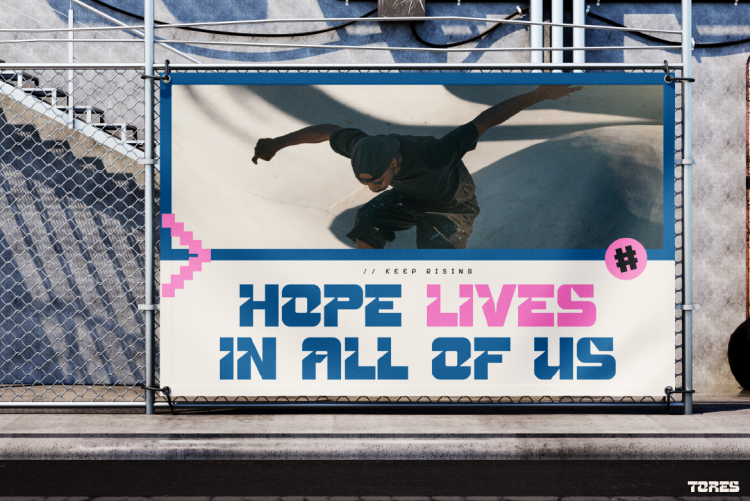 Streetwear & Music Brands: With its rebellious and stylish look, TORES fits seamlessly into fashion, music promotions, and event flyers.
