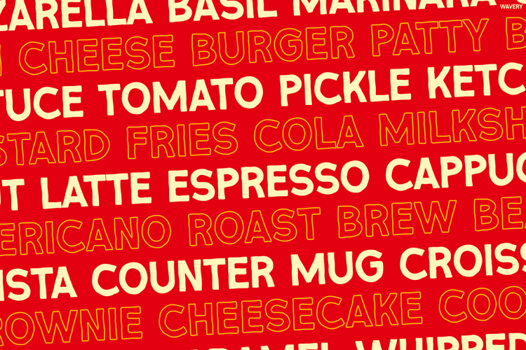 Instagram Font WAVERY is a playful all-caps food-inspired font with bold character and outline lowercase for stylish contrast. Unlike ordinary display fonts, however, WAVERY combines uppercase strength and outline style, offering flexibility and eye-catching results. Its rounded strokes feel approachable, yet professional, making it perfect for branding. As a result, your designs appear lively, modern, and easy to read across menus, posters, and digital campaigns.