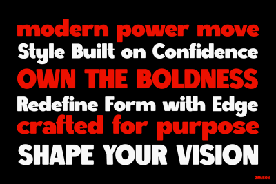 Besides being visually strong, ZAMSON is also versatile. It adapts beautifully to digital and print projects alike โ from bold headlines to trendy social media graphics. Additionally, its readability makes it suitable for both large statements and stylish small text compositions.