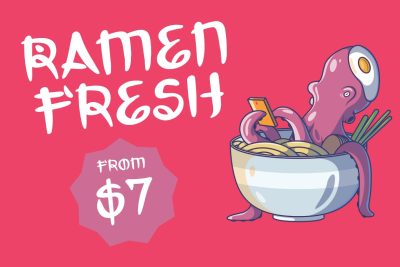 Japanese font Takoyaki is perfect for businesses and creatives wanting to add fun and playfulness to their designs. Specifically, it is especially suited for branding and promotional materials for food-related businesses such as Japanese restaurants, food trucks, or snack brands. In addition, its lively style works well for menus, packaging, and signage that reflect the warmth of Japanese street culture.
