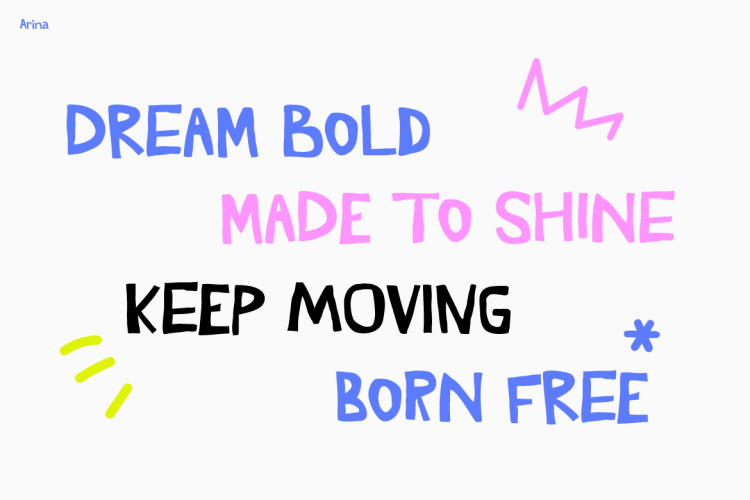 With its lively style, Kids Font Arina is more than just a typefaceโitโs also a design tool that boosts creativity. The expressive letterforms make bold titles stand out, and they also help motivational quotes pop with personality. Its versatility means you can use it for vibrant packaging, colorful social media posts, or cheerful branding. In addition, every letter feels alive, telling its own playful story. This makes the font perfect for projects that aim to spread positivity, happiness, and youthful energy.