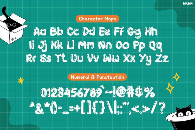 Kids Font Bulbin is ideal for educators, parents, designers, and brands that focus on children. Teachers can use it for worksheets, flashcards, and classroom decorations. Meanwhile, designers will love it for childrenโs books, story apps, learning games, and playful packaging. It also suits kids brands, toy labels, school events, and early learning platforms. In short, Bulbin is perfect for anyone who wants to communicate with kids in a friendly, positive, and engaging way.