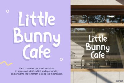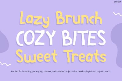 Likewise, this font is great for cafรฉ branding, kids designs, bakery packaging, and posters. It also fits logos, merchandise, and social media content. Therefore, it is ideal for designers, small business owners, and content creators. In particular, it suits anyone who wants a friendly and fun visual style. Not only that, but it is also perfect for creative campaigns that need a soft and cheerful touch.