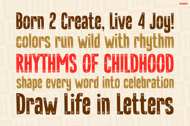 Kids Font CHISPABOOM is where rhythm meets imagination and every letter feels alive with movement. This playful, adventurous typeface captures the essence of childhoodโbold, curious, and full of laughter. Inspired by the vivid energy of folk festivals, sunny adventures, and world cultures, it combines artistic flair with functional clarity. As a result, your words donโt just sit on a pageโthey dance, sing, and tell stories.