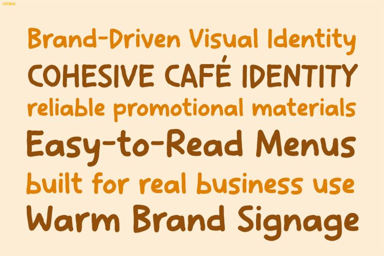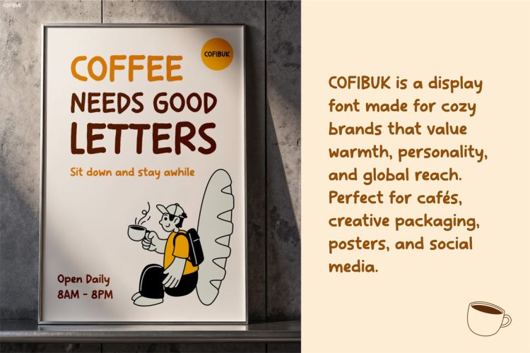 Primarily, Kids Font COFIBUK suits graphic designers, cafรฉ owners, bakery brands, food entrepreneurs, educators, and creative studios. In particular, it works well for menus, packaging, logos, posters, stickers, social media graphics, and storefront signage. Likewise, the font fits childrenโs products, learning materials, and family-friendly branding. Ultimately, anyone who wants a friendly and approachable visual voice can rely on this typeface.