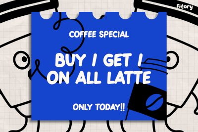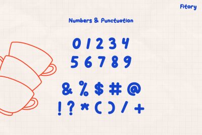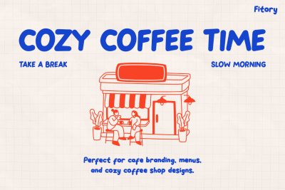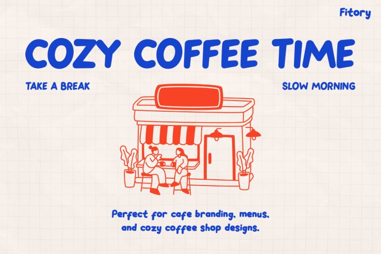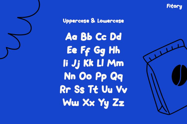 Kids Font Fitory includes uppercase, lowercase, numbers, and punctuation. Thus, it works well for both short and longer text. The font fits perfectly with colorful and illustrated layouts. For example, it shines in cozy and cheerful themes, especially coffee-style designs. You can use it on bright backgrounds or photos. Even so, it stays clear and bold. The soft curves and strong strokes create a nice balance. As a result, your message remains readable and engaging. Furthermore, it adapts well to both digital and print formats, making it highly versatile.