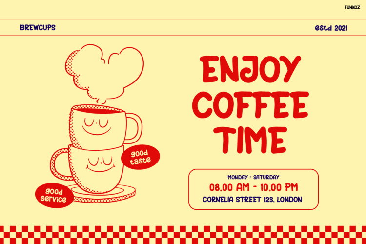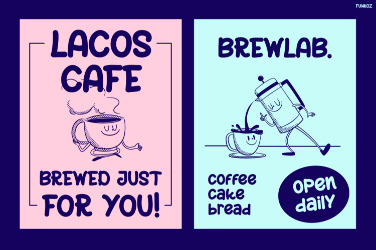 FUNKOZ is designed especially for graphic designers, illustrators, teachers, and small business owners who love adding personality to their work. Itโs ideal for kids-related designs, cute cafรฉ logos, fun stationery, party invitations, cartoon merchandise, or playful product packaging.