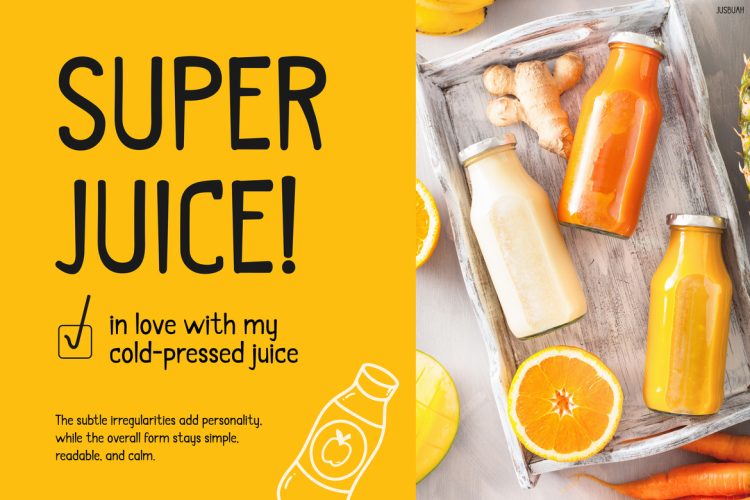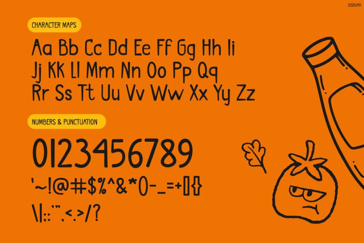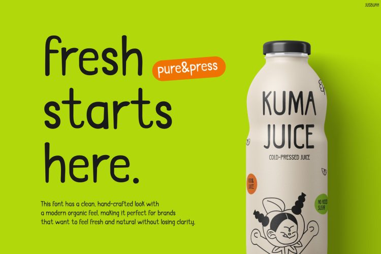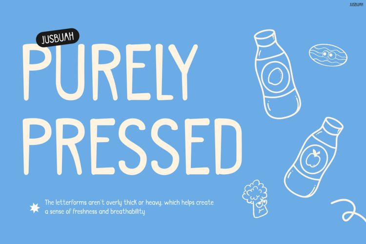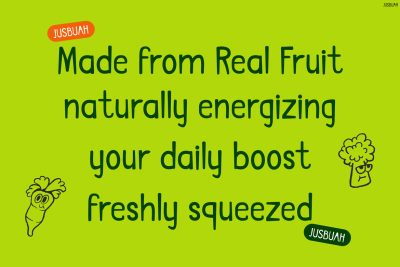 Kids Font Jusbuah is designed for creatives who want engaging and joyful visuals. For example, it works perfectly for juice branding, kidsโ packaging, healthy drink promotions, and social media graphics. Furthermore, it adapts well to posters, labels, and playful advertisements. Because of its friendly tone, it appeals strongly to children, families, and lifestyle audiences. As a result, designers and small business owners can easily create fun yet professional-looking designs.