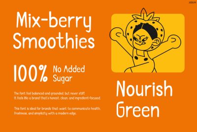 This font is ideal for graphic designers, branding teams, and content creators. In particular, it suits entrepreneurs in the food and beverage niche, especially those focused on organic or fruity products. Additionally, it works great for educational materials and event promotions that need a lively touch. Therefore, anyone looking to add warmth and personality to their visuals will benefit from this font.