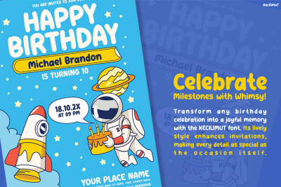 Event planners will find Kecilimut perfect for designing invitations, banners, or decorations for children’s parties or school events. Its lively aesthetic creates a fun and welcoming atmosphere.