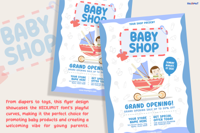 Businesses targeting young audiences, like toy brands or daycare centers, can use Kecilimut to add warmth to their branding. It’s a great choice for logos, labels, and marketing materials that need a cheerful tone.