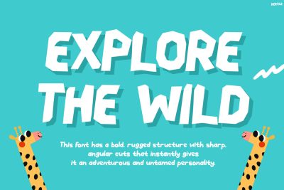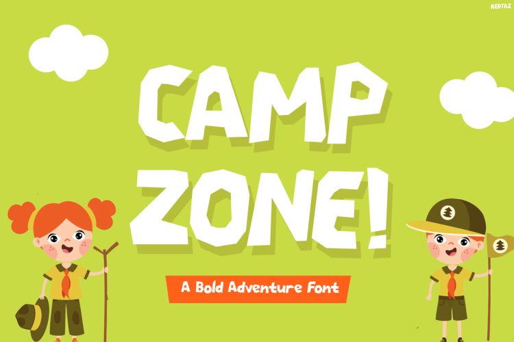 Kids Font Kertaz is a bold and adventurous typeface designed to bring the spirit of exploration into every design. At first glance, its sharp-edged, slightly irregular shapes create a dynamic and energetic look. Moreover, the handcrafted style gives it a raw, outdoor-inspired personality that feels playful yet strong. Because of its unique structure, each letter stands out while still maintaining readability. In addition, the font captures the excitement of camping, nature trips, and wild adventures. As a result, Kertaz delivers a powerful visual impact that is both fun and highly functional for kids-themed projects.