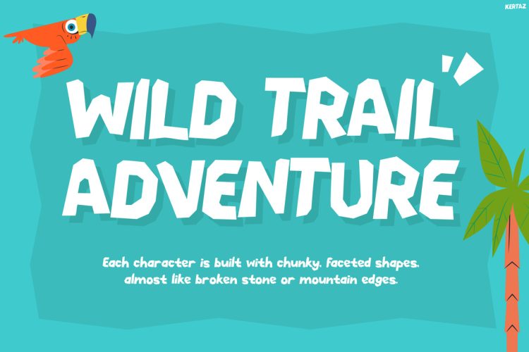 Kids Font Kertaz is a lively display font built for creative designs that celebrate outdoor fun and exploration. Not only does it feature bold and expressive letterforms, but it also pairs perfectly with nature themes, bright colors, and playful illustrations. Furthermore, its slightly rugged style adds character and uniqueness to every design. Therefore, whether you are working on posters, social media graphics, or printed materials, Kertaz helps create visuals that feel energetic and adventurous. Ultimately, it transforms simple text into eye-catching designs full of personality and movement.