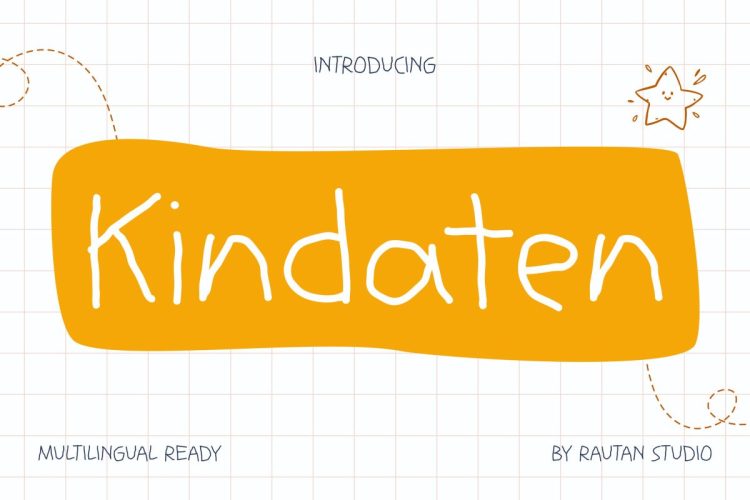 Kids Font Kindaten is a warm, friendly typeface designed to celebrate childhood imagination through simple shapes, soft strokes, and cheerful handwritten energy. From the first glance, this font feels welcoming and honest. Its rounded letterforms and relaxed rhythm create a natural reading flow that feels familiar to kids and comforting to adults. Because of its playful structure and clean spacing, Kids Font Kindaten works beautifully for both short messages and longer text. In addition, its balanced proportions keep every word readable while still looking expressive and full of personality. This font is not loud or aggressive. Instead, it communicates joy, care, and creativity, making it perfect for designs that want to feel human, educational, and emotionally positive. With support for 67 languages, Kindaten allows your message to travel across cultures while keeping its friendly tone intact.