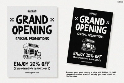 Bring your branding to life with Kids Font KOPIKOOโa font that speaks fun, friendliness, and authenticity. Whether youโre launching a product or refreshing your visual identity, KOPIKOO helps you create a lasting impression. Add it to your design toolkit and turn simple messages into eye-catching statements.