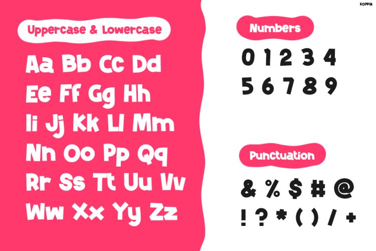 In conclusion, Kids Font KOPPIA is the perfect choice for designers who want loud, fun, and attention-grabbing visuals. So, add this energetic font to your collection today and create designs that truly pop and stand out everywhere.